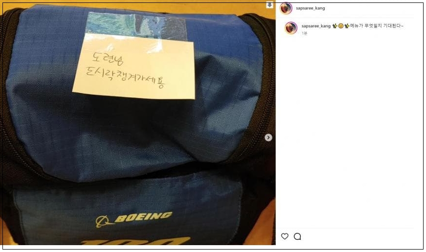보잉마크에 형수 도시락까지 올려서 나솔갤에 보란듯이 인스타에 올린 상철이네요. 어떤 요리가 들어있을지도 궁금한데요.보잉은 도시락 싸가야 하는지도 궁금하다고 하고요.